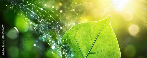 Natures photosynthesis and quantum biology are represented in a green leaf