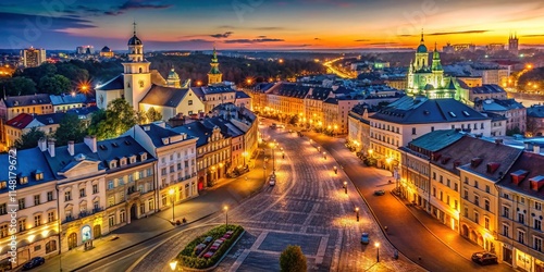 Lublin Night View: Litewski Square & Trinitarian Street - Poland Cityscape Photography