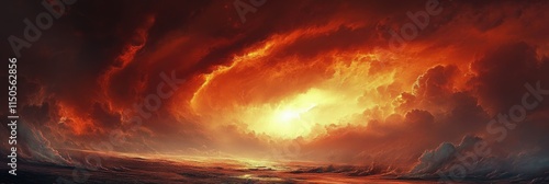 Epic Storm Sunset: A Dramatic Display of Dark Clouds and Fiery Skies in a Thunderous Atmosphere