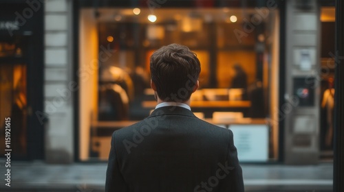 Contemplative executive gazing at shuttered storefront, reflecting on business challenges and the impact of economic downturns