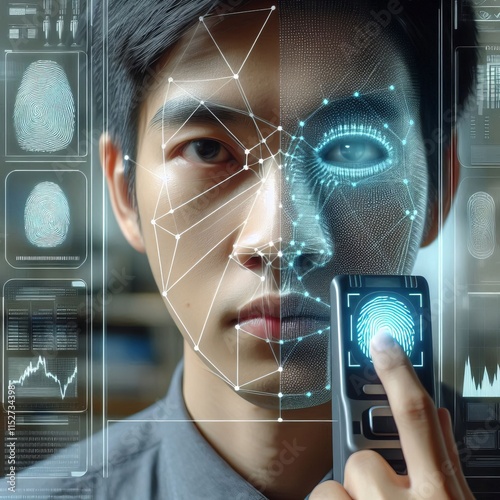 Biometric technology A person using a fingerprint scanner a pers