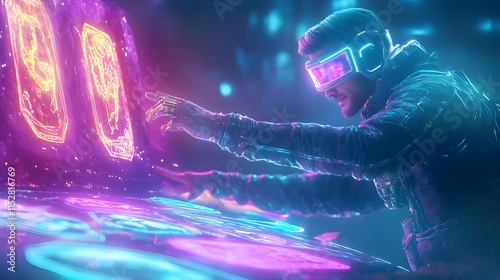 cyberpunk gamer neon future vr headset - cyberpunk aesthetics