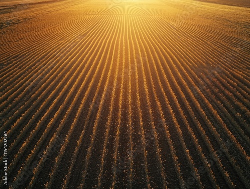 Sunset over plowed field