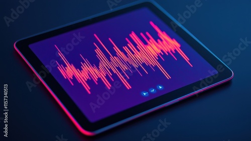 Glowing Tablet Displaying Dynamic Soundwave Visualization with Vibrant Colors Against a Dark Background for Modern Digital Art Uses