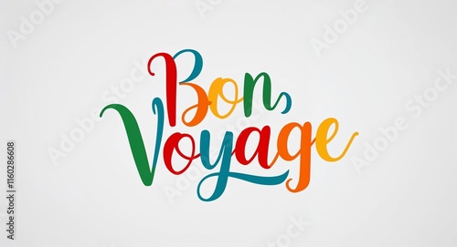 bon voyage colorful calligraphic minimalist lettering art design on plain white background