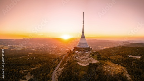 Jested Mountain with unique building on the summit. Liberec, Czech Republic.