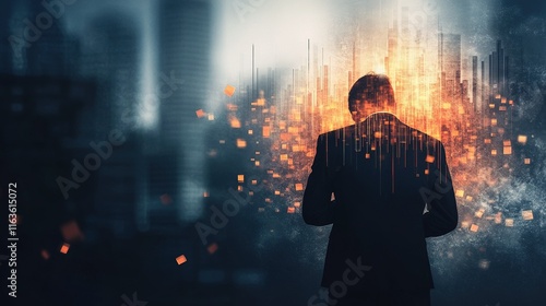 Investor anxiety illustrated, chaotic descent of financial symbols, abstract representation of market turmoil and uncertainty