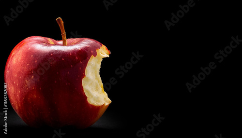 Una jugosa manzana roja mordida aislada en fondo negro