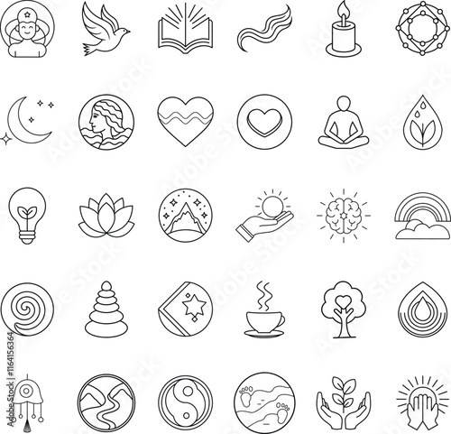 Mindfulness, Spirituality, Peace, Yoga, Meditation Icons Collection