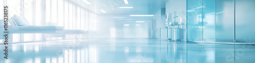 Healthcare Banner with Modern Minimal Building and Information Desk