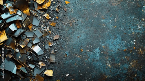 Scattered Metal Shards and Vibrant Swarf on Rough Concrete Floor