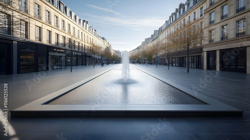 Paris sleek urban plaza with minimalist fountain and clean layout contemporary design