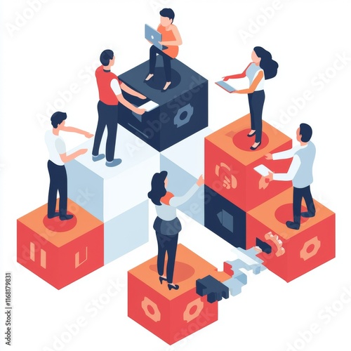 Modern Team Collaboration Concept with Diverse Professionals Engaging in Tech Tasks and Using Devices