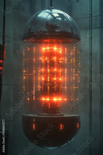 A futuristic perpetual energy machine with pulsating lights,