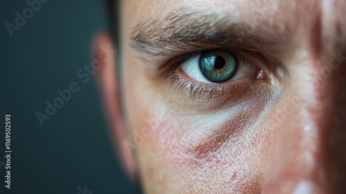A man with a blue eye staring at the camera