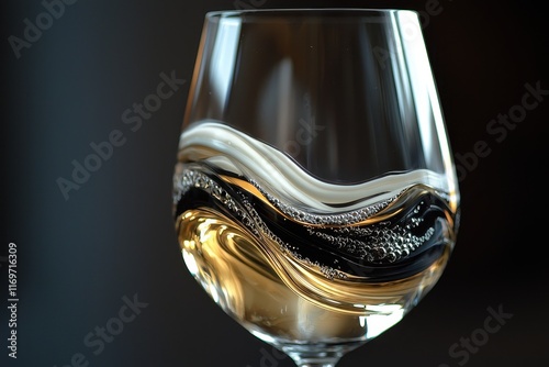 Close-up of a Wine Glass with Elegant Ripples and Golden Liquid on a Dark Background