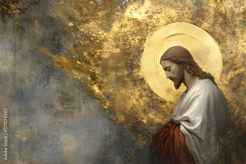 A digital painting of Jesus with a majestic and divine aura, with gentle, kind eyes and deep compassion