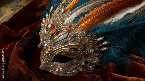 Elegante Maske mit elaborierten Verzierungen und Federn
