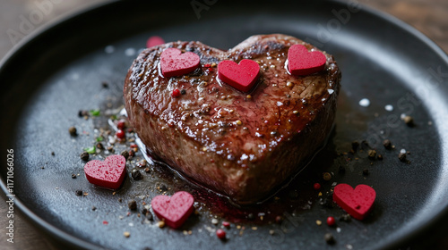 Romantyczna potrawa z sercowym stekiem, urozmaicona czerwonymi akcentami i pieprzem, doskonała na Walentynkową ucztę lub specjalne okazje.