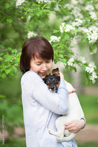 Portrait of happy twoman and dog Jack Russell