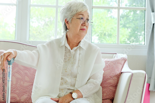senior woman portrait,Retired woman with her walking stick.
