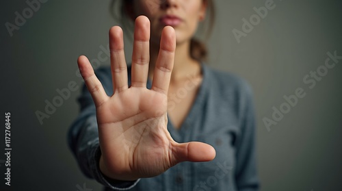 A Young Woman Showing A Stop Gesture With Her Hand To Highlight Resistance Against Harassment And Violence.