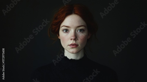 Moody portrait of a young woman studio setting artistic dark environment intimate viewpoint nostalgic expressions