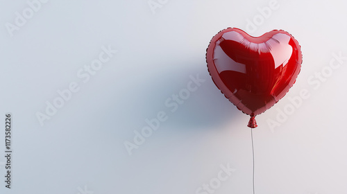 Pojedynczy błyszczący balon w kształcie serca w intensywnej czerwieni, unoszący się na czystym białym tle, idealny na romantyczne lub świąteczne projekty.