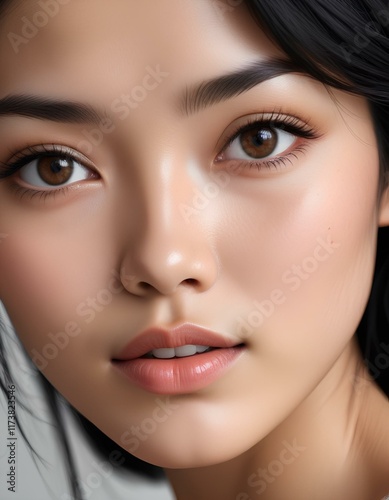 Piękna kobieta o azjatyckiej urodzie, azjatka, zbliżenie na twarz, beauty