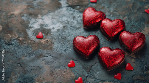 Czerwone serca rozproszone na głębokim czarnym tle, tworzące wyrazisty kontrast i elegancki motyw idealny na Walentynkowe projekty.