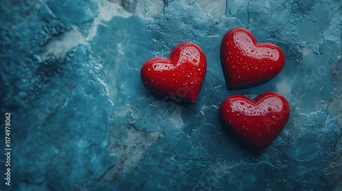Kompozycja z sercami na tle w stonowanych odcieniach, symbolizująca miłość i Walentynkowy klimat.