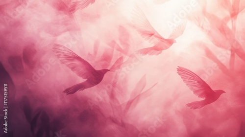 Softly Glowing Birds in Ethereal Brilliance Above a Dreamy Background