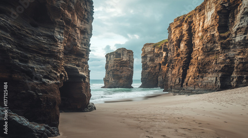 Formacje skalne w otoczeniu dzikiej natury, uchwycony w subtelnym świetle dziennym, podkreślający piękno i unikalność krajobrazu.