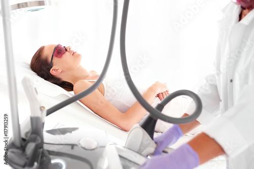 Laser w kosmetyce. Kobieta na zabiegu depilacji laserowej