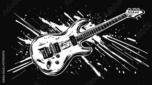 Tshirt prints with electric guitars, vector emblems for hard rock music club or band apparel design. T shirt monochrome prints with typography for musical festival isolated labels with amp and flashes