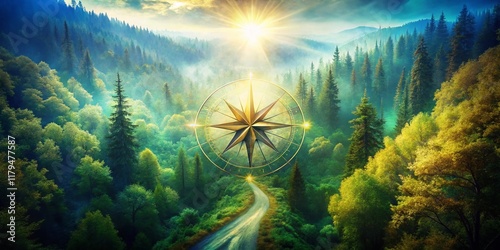 Double Exposure: Inner Compass Guiding Path - Abstract Moral Choice