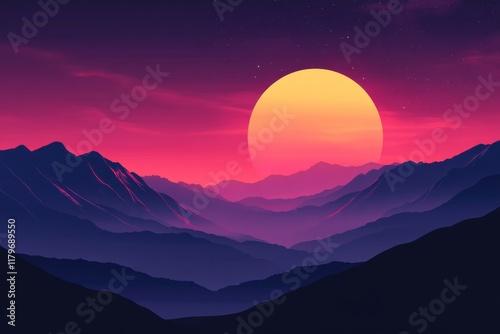 Vibrant Sunset Over Silhouetted Mountainscape