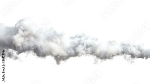 White panoramic smoke trail creating an ethereal effect isolated on white background