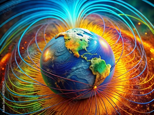 Macro Earth Magnetic Field Diagram: North & South Poles Visualization