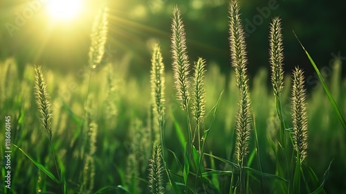 Sunlit Tall Grasses Swaying Gently in Warm Summer Breeze with Bright Background : Generative AI