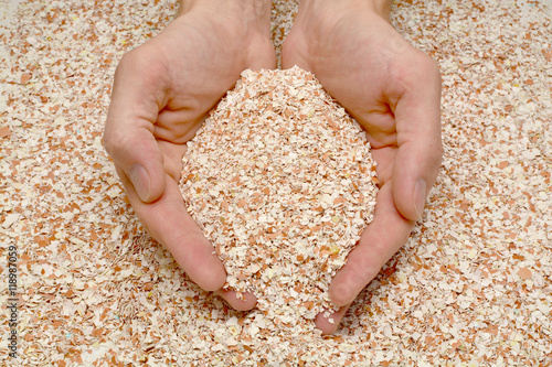 handful of eggshell in male hands