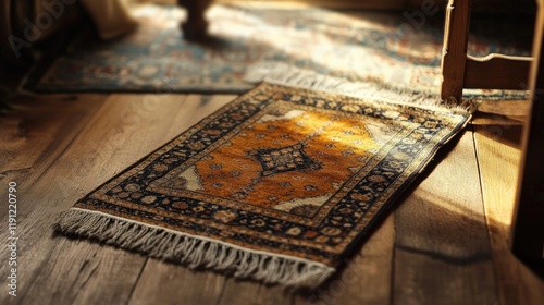A beautifully crafted prayer rug set against a soft backdrop, symbolizing devotion on Eid ul Adha