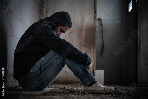 Asian men are drug addicts to inject heroin into their veins themselves,Thailand no to drug concept,The bad guy drugs in the desolate,Trapped in darkness and consumed by addiction
