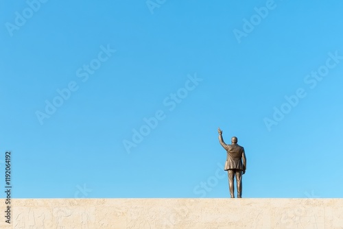 Modern Monumental Elegance Bronze Sculpture Against Azure Sky - European Day of the Righteous Tribute with Historical Carvings for Public Art and Cultural Events