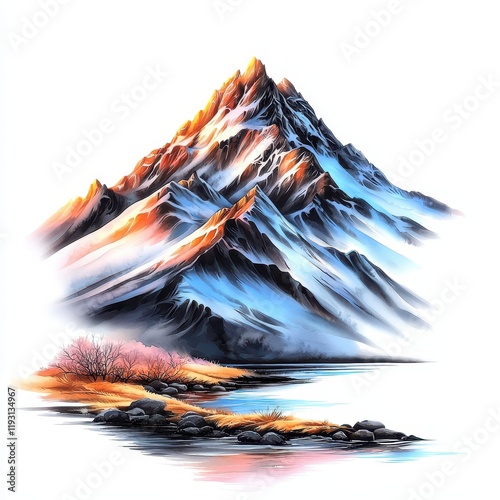 Vibrant Mountain Landscape with Snow-Capped Peaks and Serene River Reflections