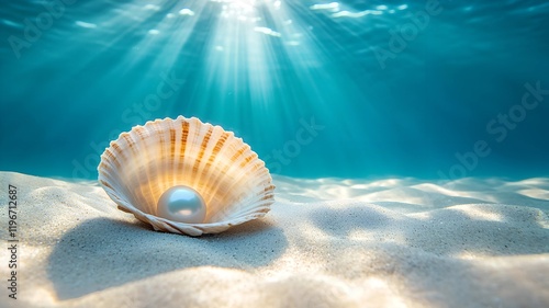 Seashell with White Pearl on Ocean Floor – A Serene and Magical Underwater Masterpiece