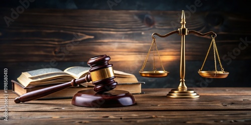 Gavel, Scales of Justice, Law Book: Criminal Law Concept Stock Photo