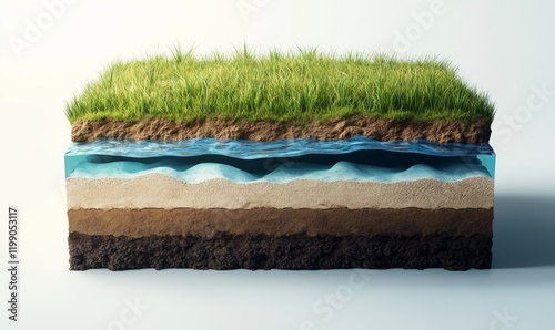cross section of Earth showing soil, water, and grass layers, illustrating nature elements
