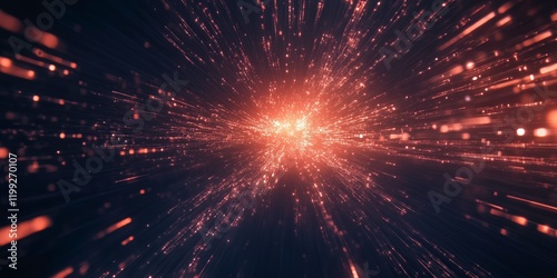 Cosmic Expansion: A mesmerizing abstract image depicting a radiant burst of light and energy, resembling the expansion of the universe or a star's birth, filled with vibrant orange and red hues.