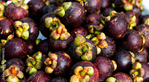 Pile of fresh mangosteens in market